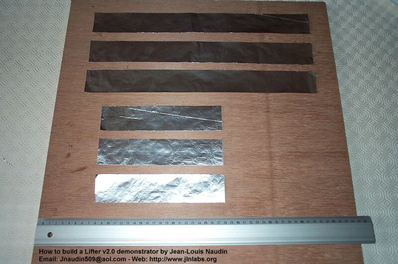 3-A) Découpez ( avec le cutter et la règle ) dans une feuille d'aluminium de cuisine de 12/100 mm, des rectangles aux dimensions suivantes :